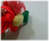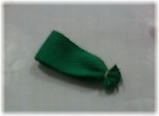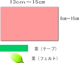 葉っぱを作ります。今回はテープを使いました。 フェルトで作る場合は、2枚を木工用ボンドで重ねると 少しシッカリした葉っぱになりますよ。 |