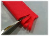 二つ折りにして、ボンドで貼り付けましょう。 この時、ボンドは端から3ミリ程度上につけましょう。 ボンドが乾くと針が通らなくなりますので気をつけて 下さいね。 |