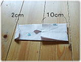 10センチと反対側を2センチ折り、アイロンをかけます。 三つ折にします。 |
